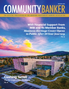 MONTANA HERITAGE CENTER Opens to Public After 20-Year Journey the Montana Heritage Center officially welcomed the public on Dec. 3, following a ribbon-cutting ceremony on Dec. 2 that marked the completion of a 20-year vision and $107 million investment in preserving Montana’s cultural heritage. Hundreds gathered for the ribbon-cutting ceremony, which featured Montana Governor Greg Gianforte, major donors Dennis Washington and Norm Asbjornson, Montana Historical Society Director Molly Kruckenberg and Board President Tim Fox. The event celebrated both the world-class facility and the successful conclusion of a $60 million private fundraising campaign supported by more than 1,300 donors worldwide. “This project became a reality because Montanans and supporters worldwide understood the importance of investing in our heritage,” said Kruckenberg. “The Montana Heritage Center gives our state’s 12 Community Banker