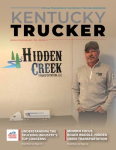 www.kytrucking.net | Vol. 55, No. 2 Official Publication of the Kentucky Trucking Association KENTUCKY TRUCKER MEMBER FOCUS, ROGER WADDLE, HIDDEN CREEK TRANSPORTATION Read More on Page 22 UNDERSTANDING THE TRUCKING INDUSTRY’S TOP CONCERNS Read More on Page 14