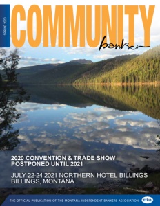 the official publication of the montana independent bankers association SPRING 2020 2020 CONVENTION & TRADE SHOW POSTPONED UNTIL 2021 JULY 22-24 2021 NORTHERN HOTEL BILLINGS BILLINGS, MONTANA