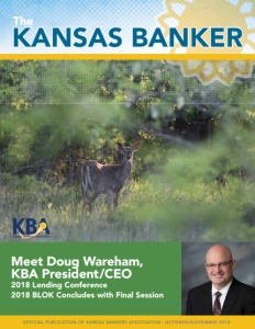 The KANSAS BANKER Meet Doug Wareham, KBA President/CEO 2018 Lending Conference 2018 BLOK Concludes with Final Session OFFICIAL PUBLICATION OF KANSAS BANKERS ASSOCIATION | OCTOBER/NOVEMBER 2018