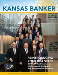 The KANSAS BANKER REINTRODUCING YOUR KBA STAFF 2018 KBA Trust Conference 2018 Economic Outlook & Risk Management Conference OFFICIAL PUBLICATION OF KANSAS BANKERS ASSOCIATION | DECEMBER 2018